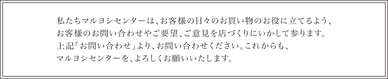 店名に込めたのはひとつ上のおいしさを目指すための3つのキーワード。 「健康とおいしさ」のマルヨシセンターが、さらにこだわりを重ねた新スタイル店舗です。