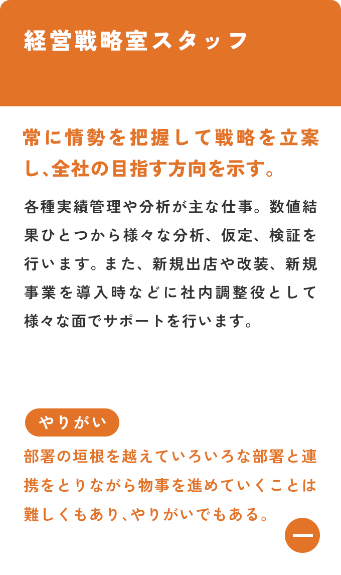 同じ部門のキャストさんは、皆さん気さくで優しく、気軽に話しかけられる大切な存在。店長も自分がわからないことがあれば、積極的に相談に乗ってくださったり、フォローしていただける、とても尊敬している存在です。