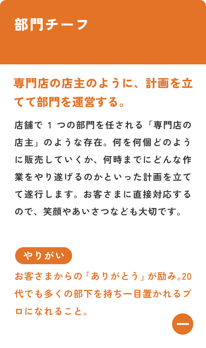 将来は店をまとめる管理職を目指していますが、まずはデイリー・デリカ部門の仕事を完璧にこなし、チーフになることを目指していきます。