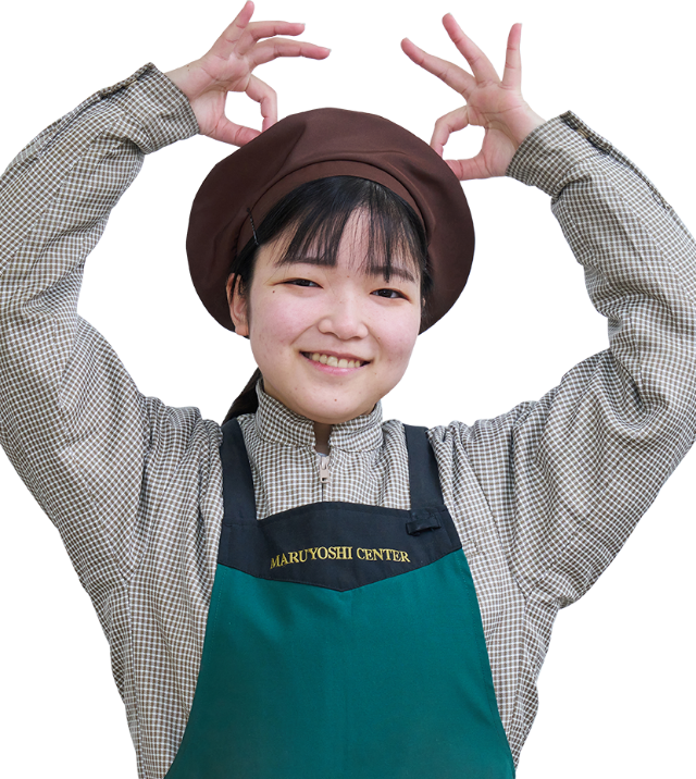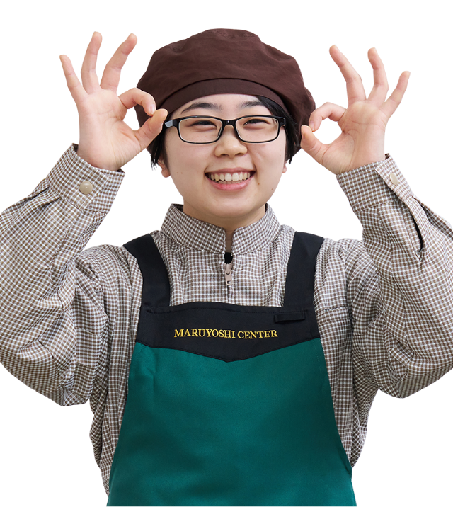 私は食べることが好きで、大学時代にスーパーマーケットでアルバイトをしていたことで、食品に関する仕事に就きたいと思っていました。就職活動で「健康とおいしさ」「安心と安全」を掲げ、品質の良い商品をお客さまに提供する取り組みを行っているマルヨシセンターを知り、入社を希望しました。