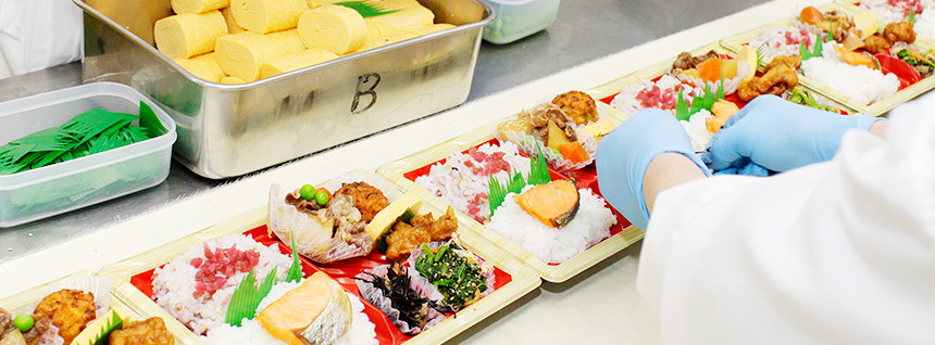 健康弁当には一切、食品添加物を使用していません。また食品の検査や検食も、専門スタッフによる複数のチェックで毎日、実施しています。